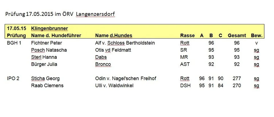 Frühjahrsprüfung 2015 im ÖRV Langenzerdorf